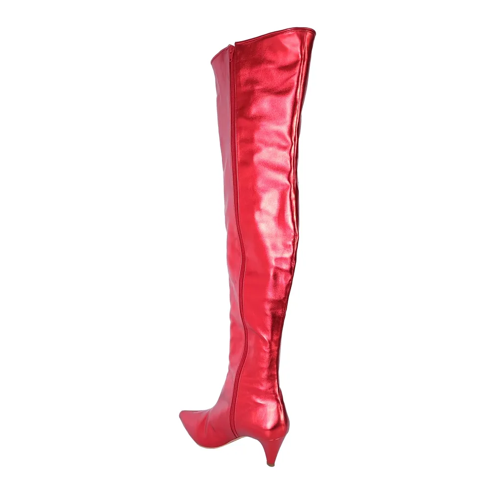 Bota feminina de cano extralongo (até a coxa) com bico fino e salto baixo fino